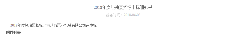 導熱油泵中標通知:
