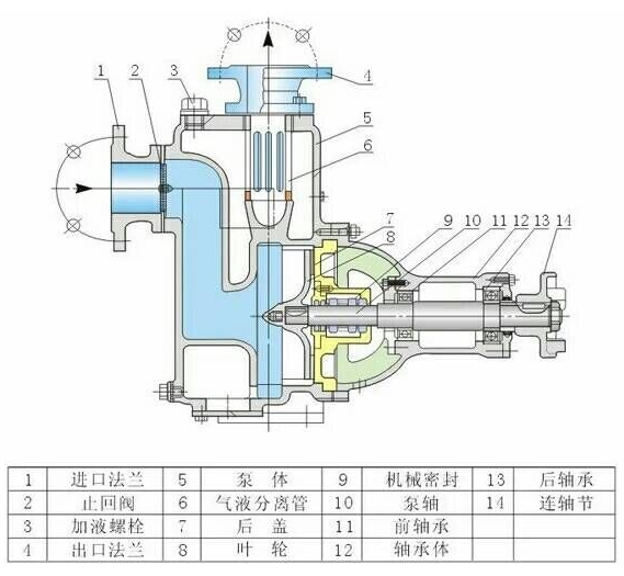 CYZ自吸泵采用軸同回液的泵體結構,泵體由吸入室、儲液室、渦旋室、回液孔、氣液分(fèn)離室(shì)等(děng)組成;泵的(de)軸承采用單列向心球軸承,在一些泵的軸承體底部設有冷(lěng)卻(què)室,泵內部高、低壓區間(jiān)有密封環,軸端采用機械密(mì)封。